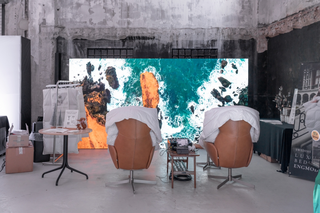 행사장엔 라이트박스를 설치한 테이블이 있어 이불 속을 비춰볼 수 있도록 했다. 이는 속을 보고 구매할 수 없는 듀벳의 물리적 한계를 뛰어넘고자 준비됐다고. 더불어 아크릴 박스 안에 실제 아이더다운을 비치, 귀하디귀한 솜털이 여느 소재와 어떤 차별점이 있는지 눈으로 확인하도록 했다. 프리미엄 브랜드의 자신감을 엿볼 수 있는 대목이다. 엥모둔은 “엄격한 품질 관리를 통해 이루어 낸 수면의 진정한 가치를 경험해볼 수 있을 것”이라 전했다.